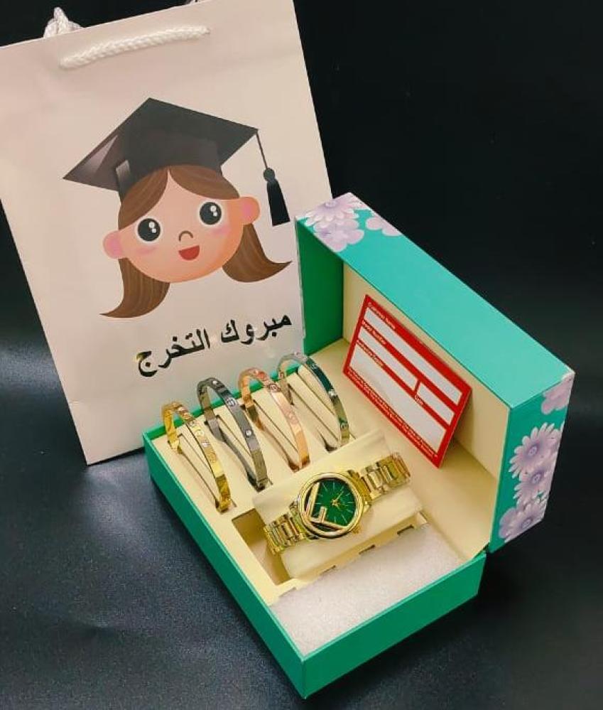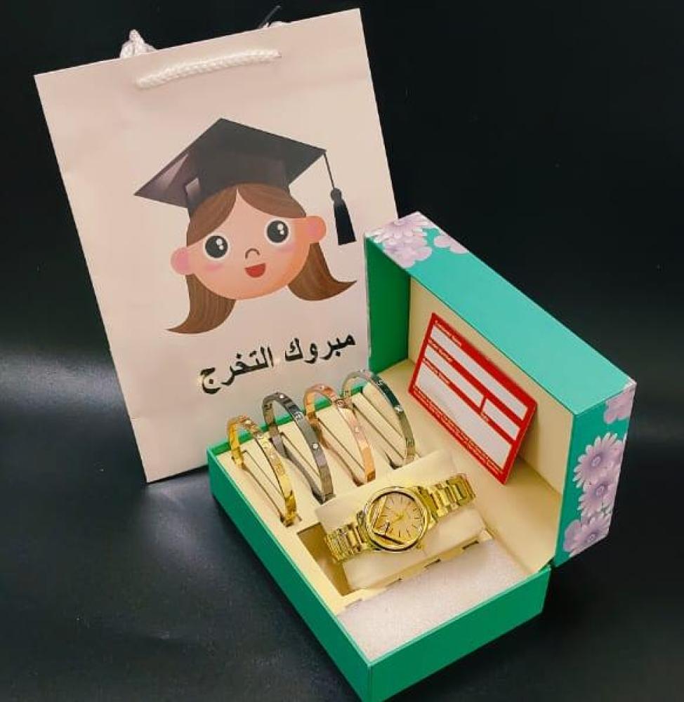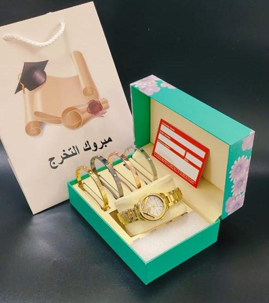 3. علبة فاخرة لوضع الساعة والأساور بها، لإعطاء الهدية مظهرًا راقيًا وجميلًا.