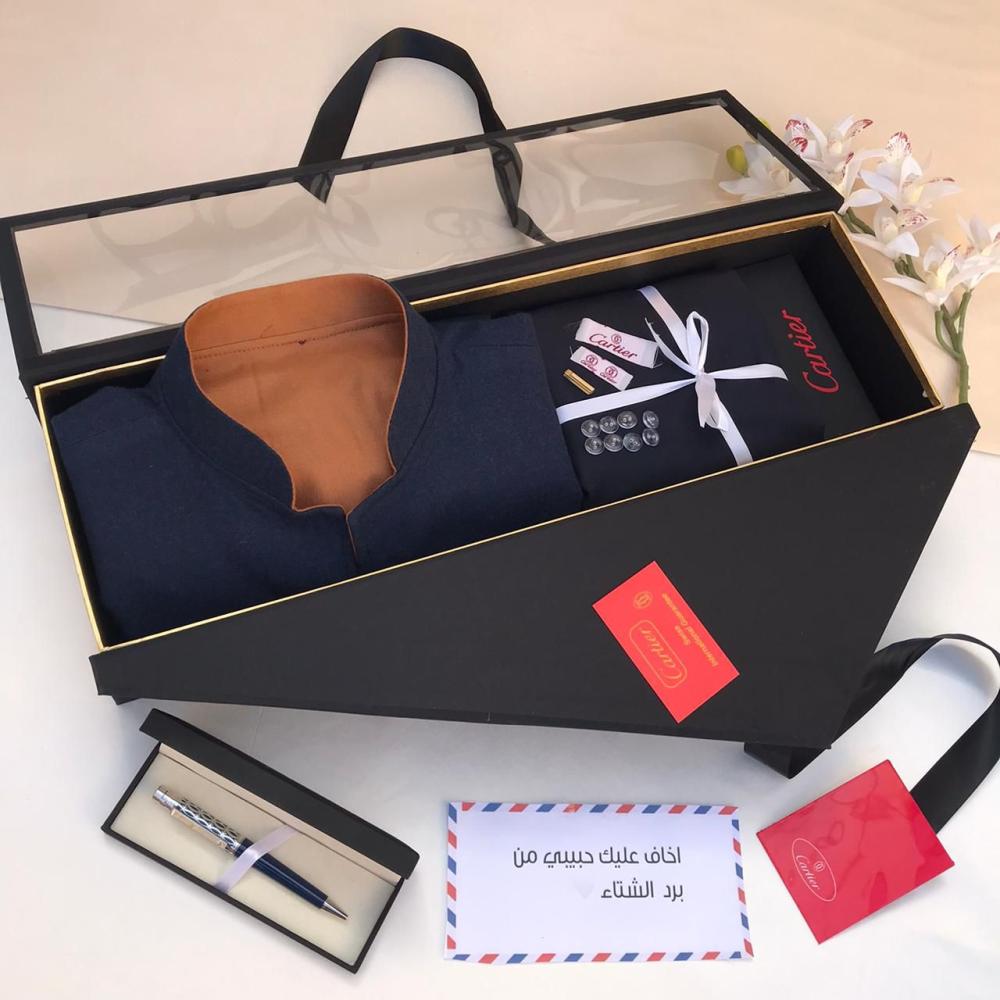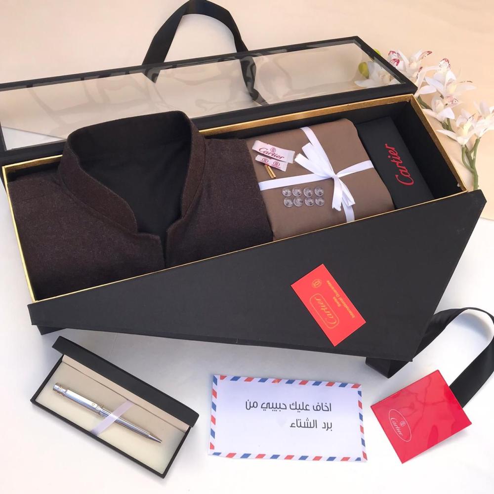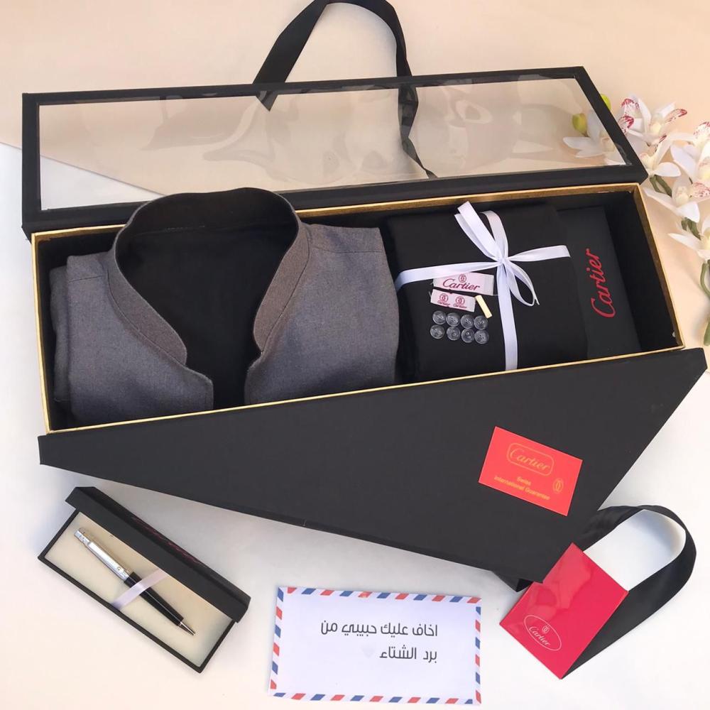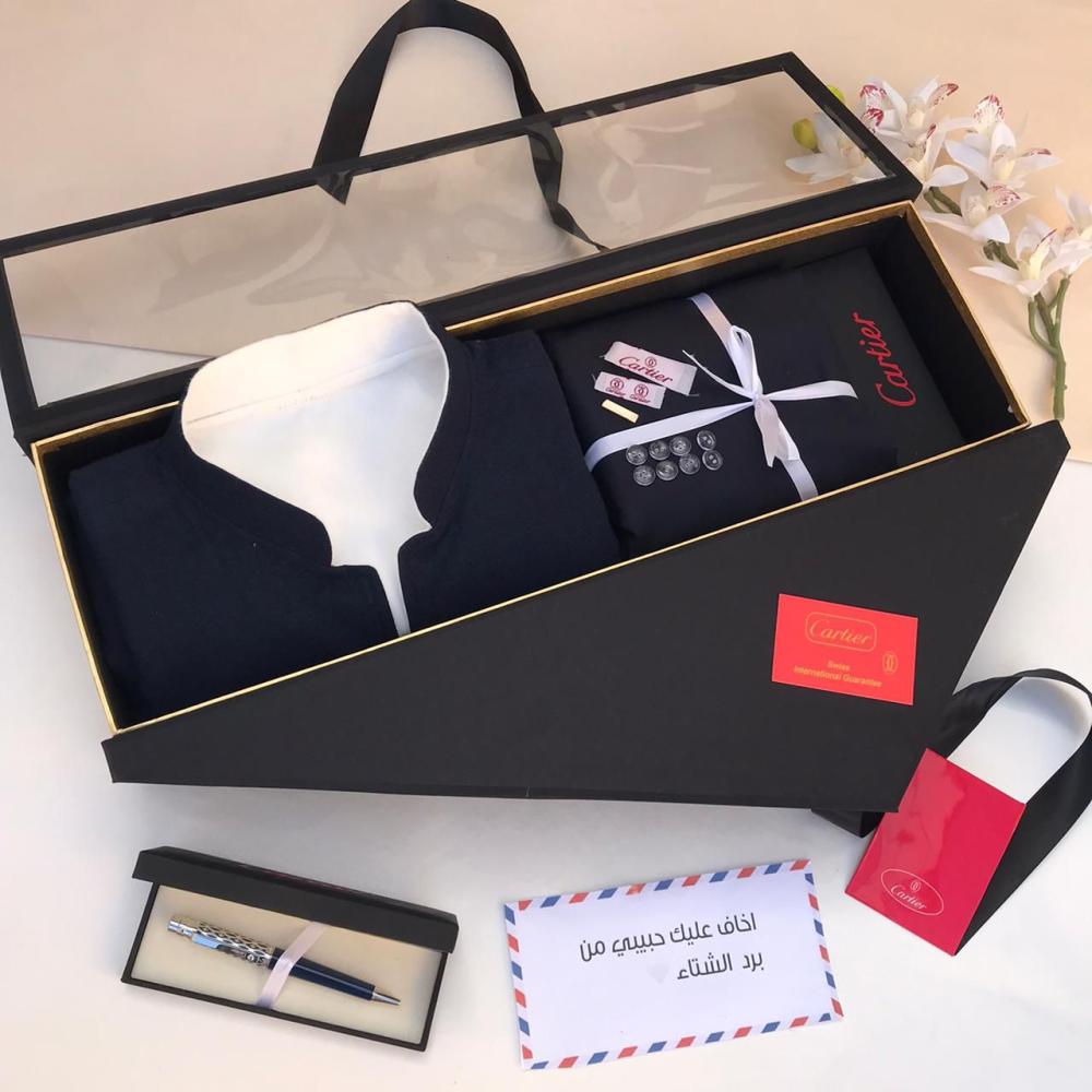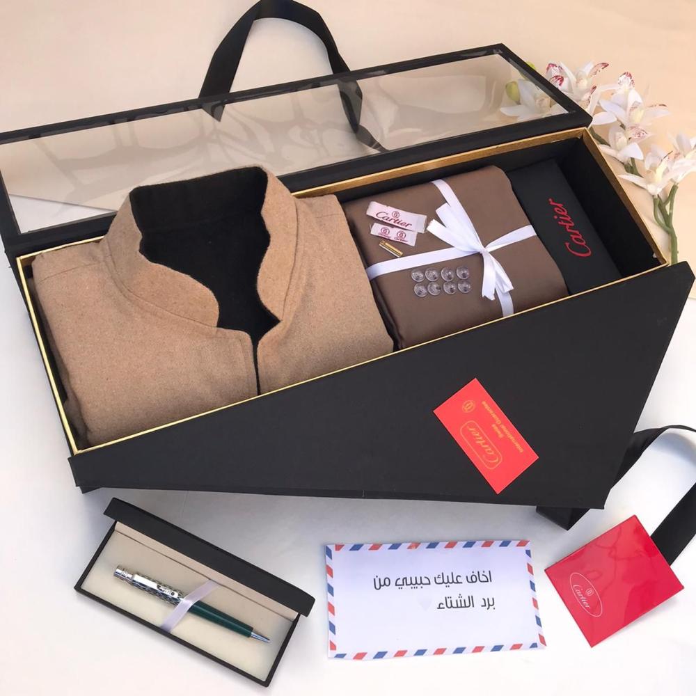 هدية شتوية رجالية فاخرة – قماش شتوي + سديري جوخ + قلم فاخر